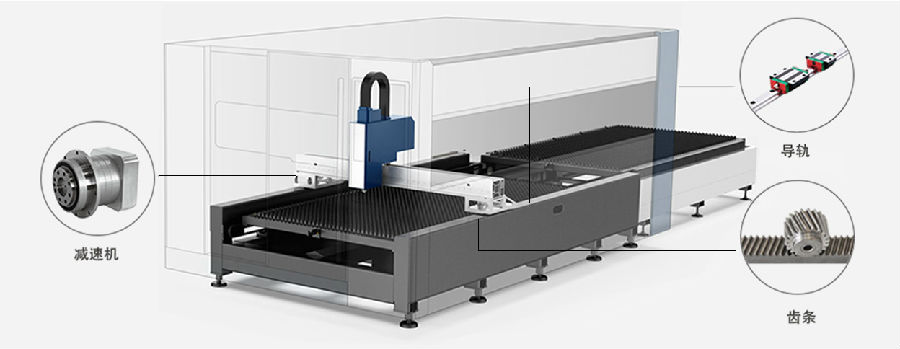 光纖激光切割機(jī)配備臺(tái)灣yyc齒條,日本新寶法蘭輸出減速機(jī)、臺(tái)灣上銀導(dǎo)軌。