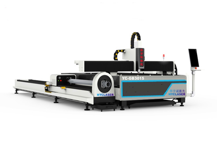 YC-GB3015板管一體激光切割機(jī)又名板管兩用光纖激光切割機(jī)既能切割板材,又能切割管材型材(包括方管、圓管、槽鋼、角鋼等),而且碳鋼、不銹鋼都能切割。一機(jī)多用,性價比較高。床身采用鑄鐵床,齒輪齒條傳動系統(tǒng),專業(yè)切管數(shù)控系統(tǒng),精度高,功能全,使用方便,操作簡單。板管兩用光纖激光切割機(jī)適合綜合型加工制造企業(yè)。